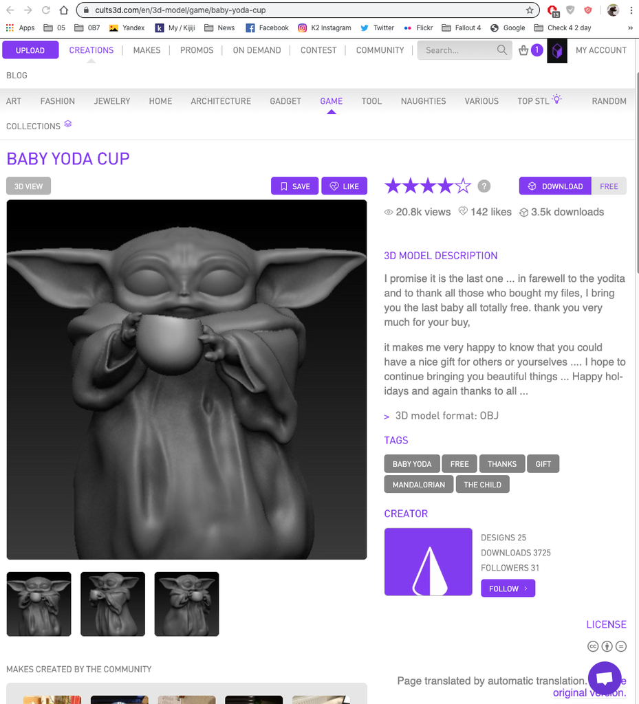 . 173k More model information The child from the mandalorian although sketchfab is. Download your favorite STL files and make them with your 3D printer. Files for each version are available for download after the purchase.